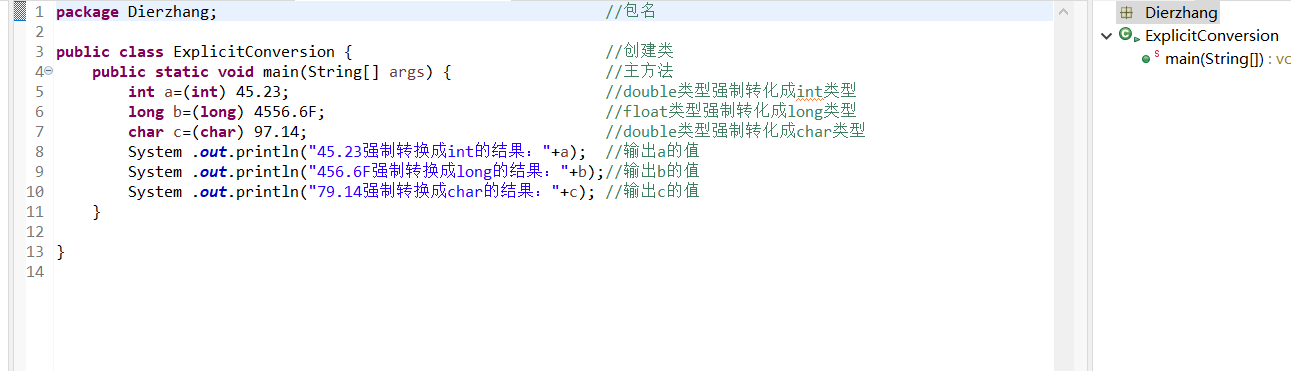 例2.8 将不同的数据类型进行显示类型转换。