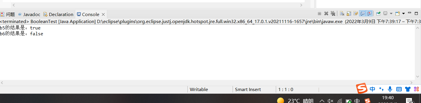 例2.6 声明boolean型变量。