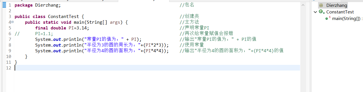 在程序运行过程中一直不会改变的量称为常量,通常也被称为"final变量"。常量在整个程序中只能被赋值一次。
