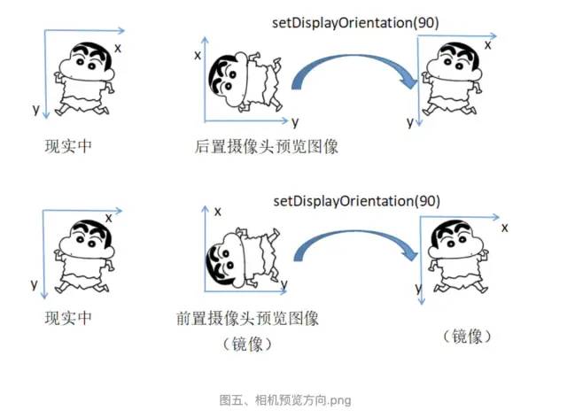 Orientation:相机采集图片的角度,摄像头的传感器在手机中是横向的,在预览的时候根据Camera的预览方向进行顺时针旋转对应角度进行设置即可正常预览。如果不正确设置会导致预览时出现倒立、镜像等问题。把预览的图片保存为相册也要单独设置方向,注意这个方向和预览方向互不相干。