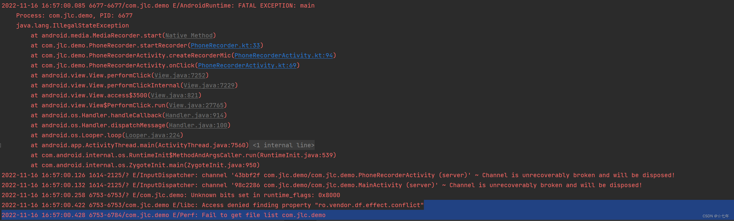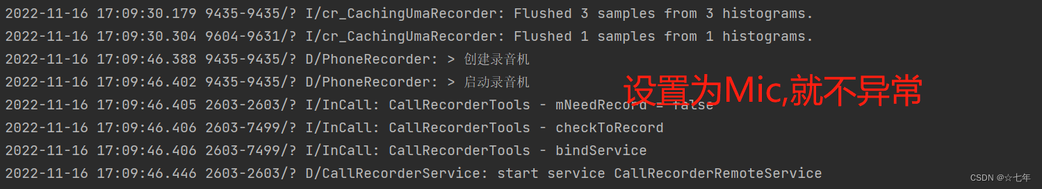 以上就是大气果汁最近收集整理的关于Android 录音没有声音,设置AudioSource.VOICE_CALL直接MediaRecorder.start异常等系列问题的全部内容,更多相关Android内容请搜索靠谱客的其他文章。