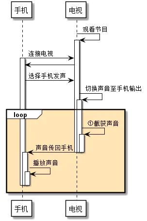 比如:用户观看电视节目,当手机app连接电视,用户选择手机发声,那么电视机的喇叭自动静音,而将声音转到手机上输出。