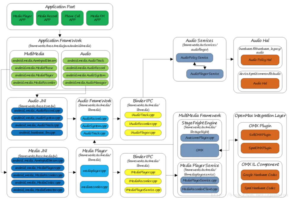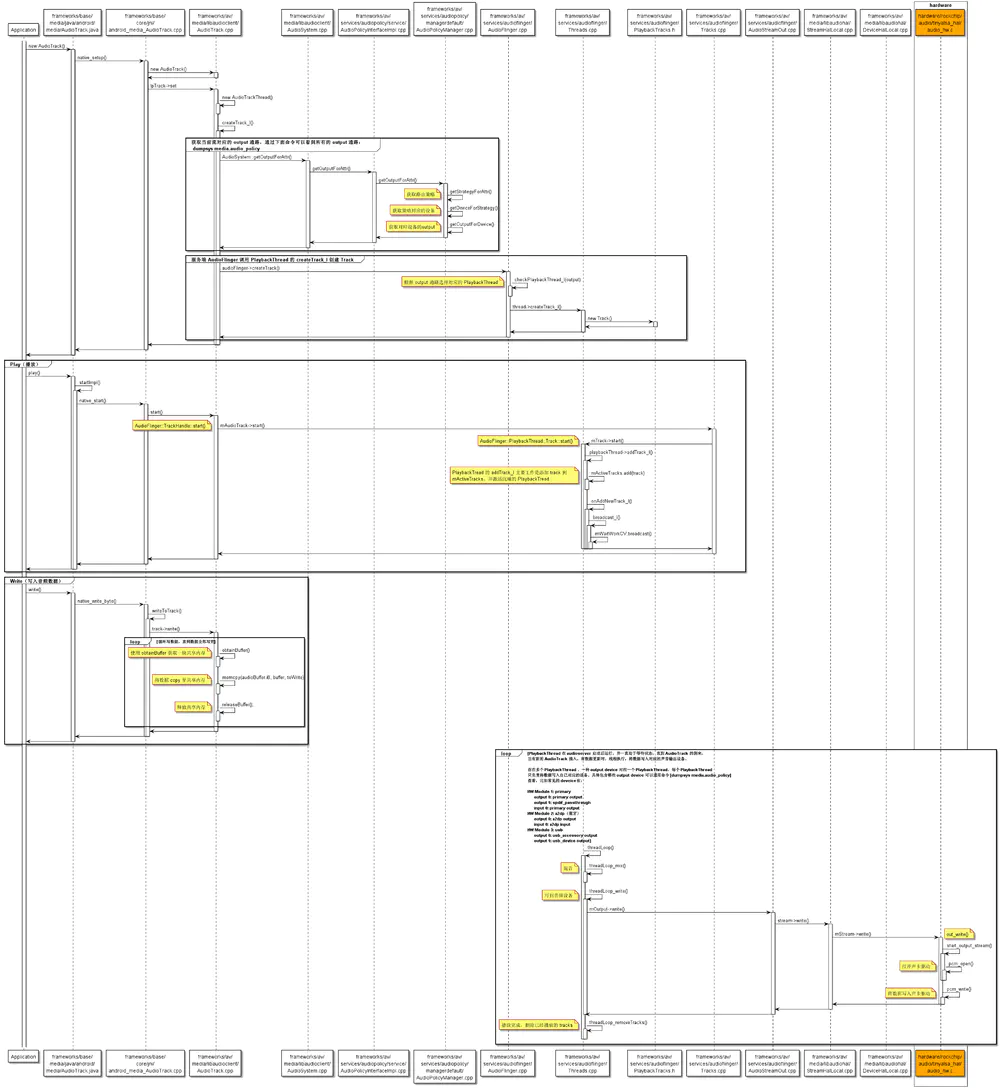 Android 声音播放都是通过 AudioTrack 进行,包括 MediaPlayer 最终也是创建 AudioTrack 来播放的。通过 AudioTrack 播放声音主要包括下面几步: