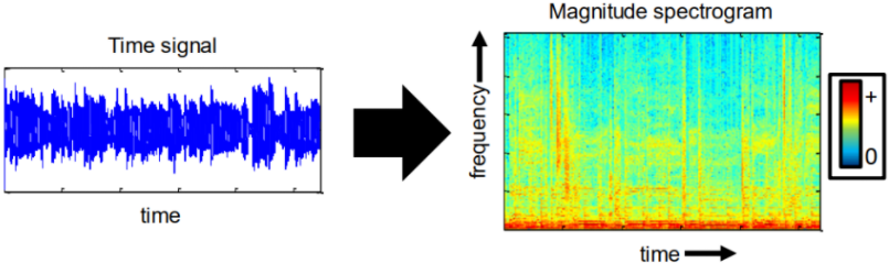我们都知道语音信号可以通过时域波形或者频域的各种频谱表示,此外语谱图可以同时展示时域和频域的信息,因此被广泛应用,如下图所示。