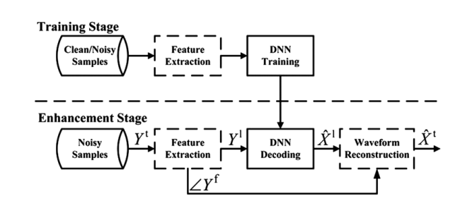 基于映射的语音增强方法通过训练神经网络模型将噪声谱与纯净谱之间的映射关系,其流程如下图所示,很多博客和文章也有讲这个方法但是我觉得不详细,让初学者一脸懵逼,下面详细介绍。