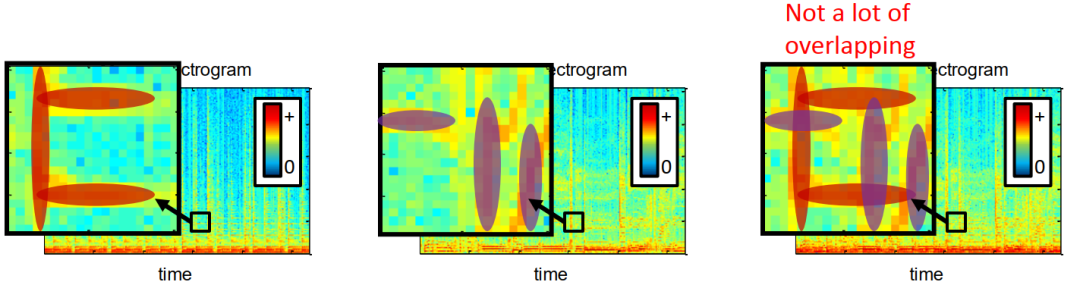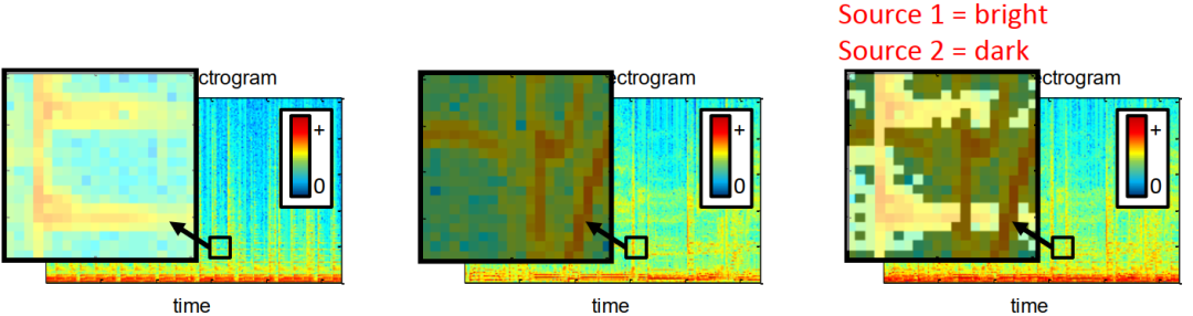 基于以上两点假设,我们就可以分离我们想要的信号和噪声信号。给可能属于一个信号源的区域分配掩码为1,其余的分配掩码0,如下图所示。