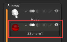 先选择模型, 然后在 subtool 中直接 insert 一个 zshpere
