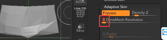 预览后有很多小洞, 这里可以调节. 将 dynaMesh resolution 设为 0