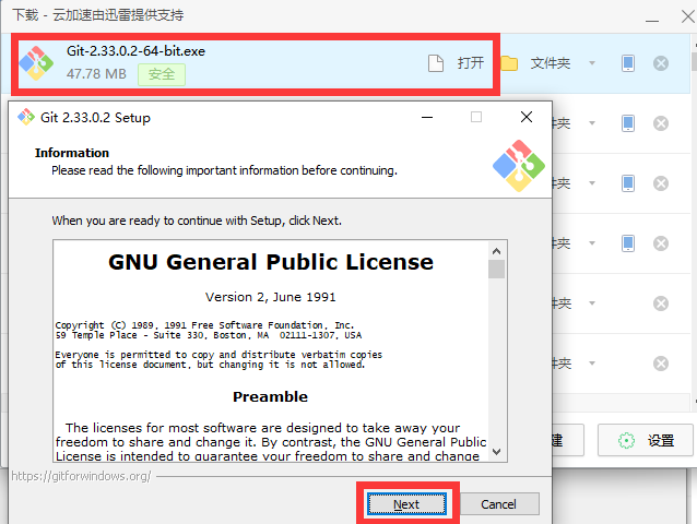 单击页面中的Download按钮,下载安装包。打开下载好的Git-2.33.0.2-64-bit.exe,开始安装,单击Next按钮