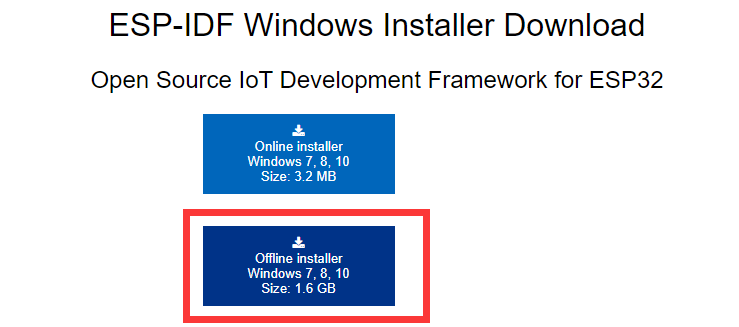 最新的esp-idf-tools-setup版本为2.10,安装程序分在线安装和离线安装,这里强烈建议使用离线安装方式,因为涉及到在线下载一些国外镜像失败的情况。