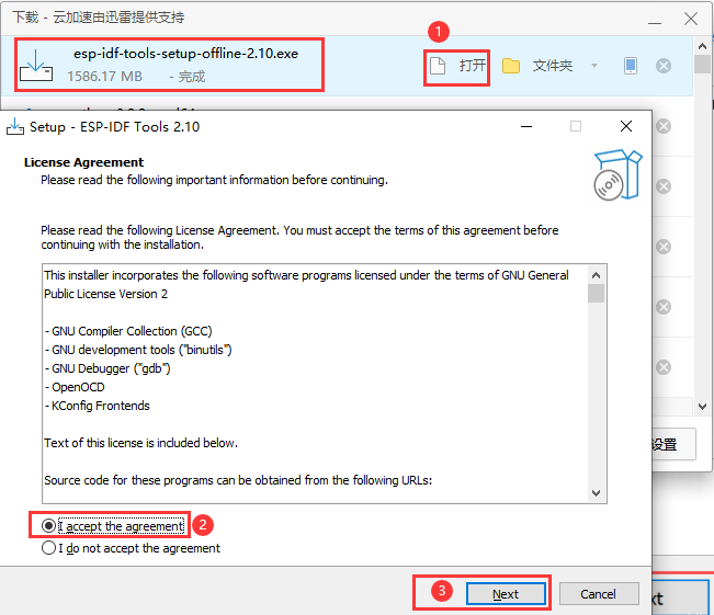 双击下载好的esp-idf-tools-setup-offline-2.10.exe。