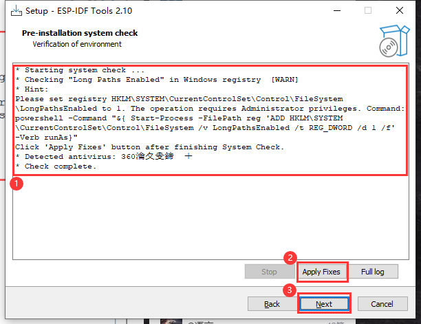 安装程序会检查你当前系统有没有打开"长路径支持",因为GNU编译器产生的编译文件会有非常深的目录结构,如果不支持长路径,编译可能出现文件不存在,目录不存在等奇怪的错误。