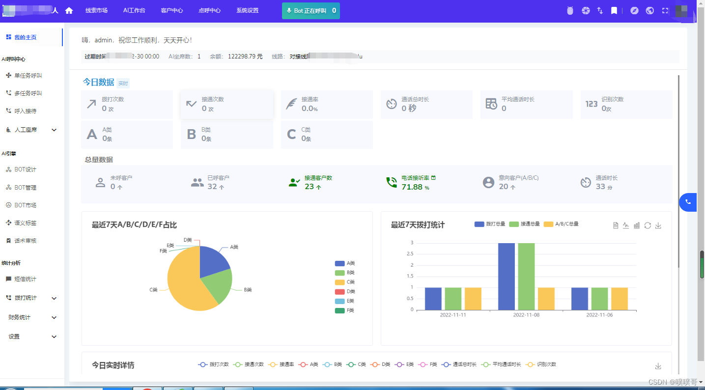 它有很多其他的叫法,说的都是一回事情的。也叫电话机器人,电话外呼机器人AI智能电话机器人,智能电话机器人,AI机器人,话务机器人,电话外呼机器人,电话群呼机器人,批量外呼机器人。