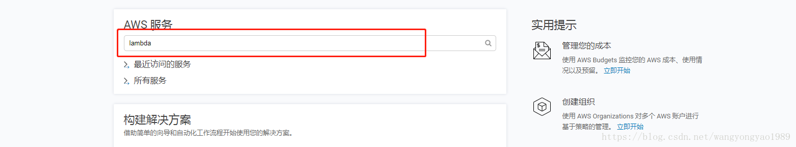 6.接下来是需要注册AWS账号(需要绑定Visa信用卡),注册完成登录在搜索Lamdba进入lambda函数界面: