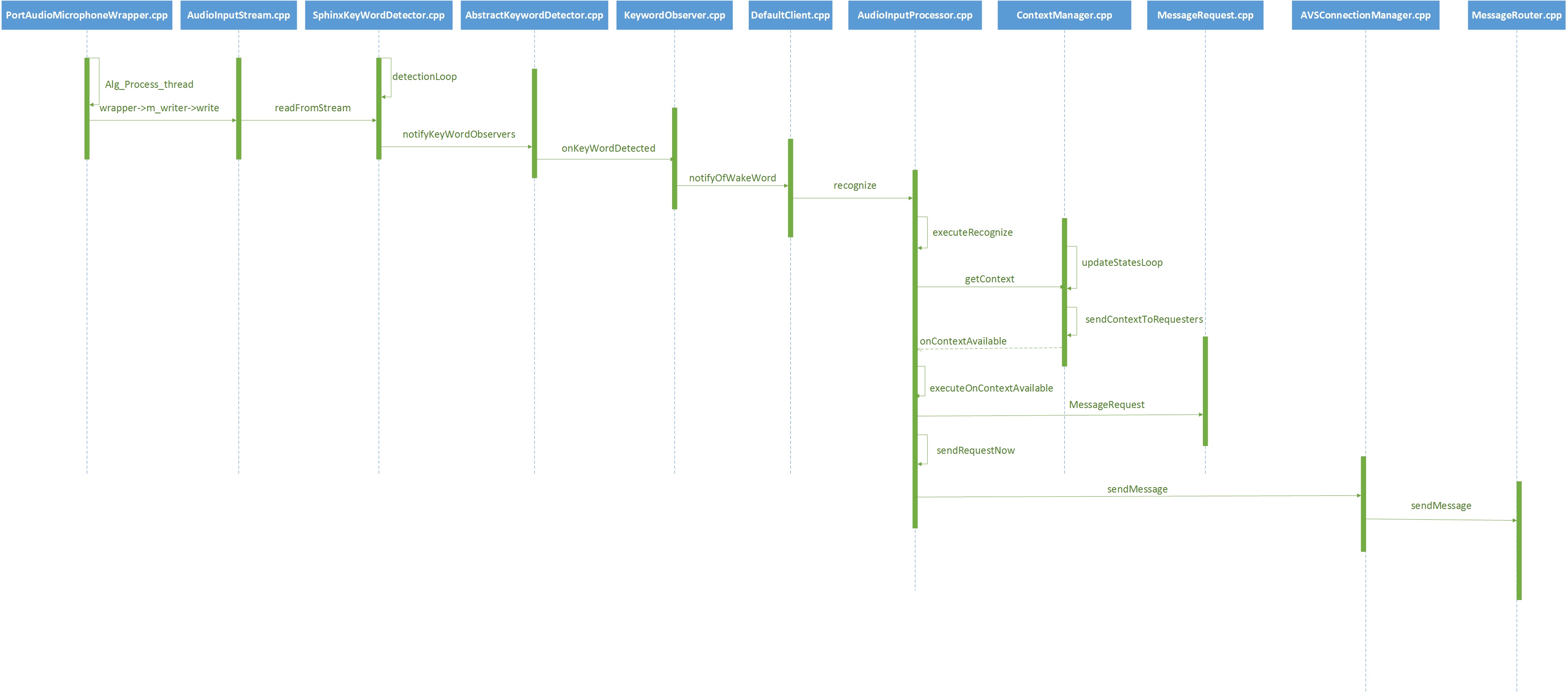 这一节,主要分析从将设备唤醒到把用户输出的语句发送至Alexa Server 这一个过程