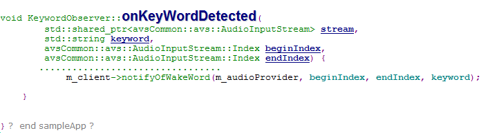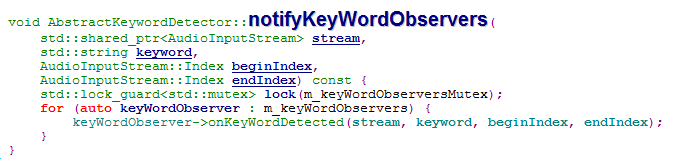这里的keyWordObserver是在SampleApplication::initialize()中传入的也即KeywordObserver对象,继续看
