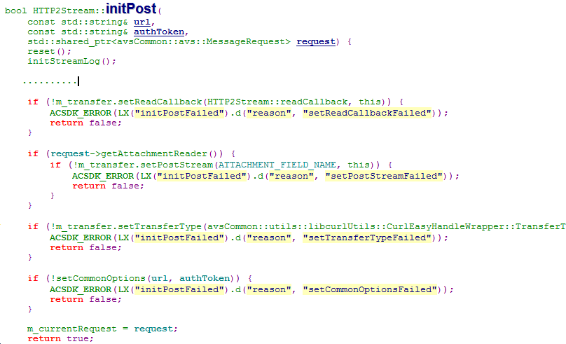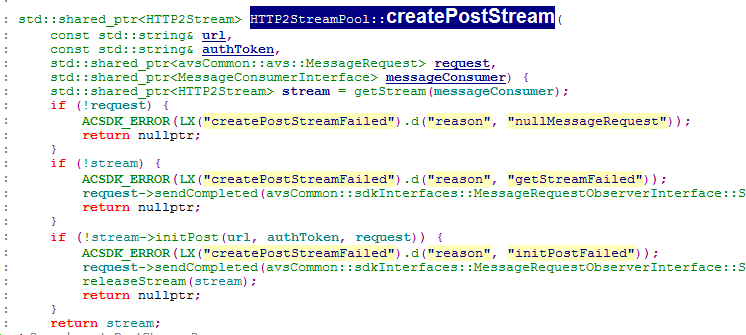 拼凑url, m_avsEndpoint默认取https://avs-alexa-na.amazon.com.createPostStream创建对应的HTTP2Stream。并将stream对应的curhandle放入到m_multi中,以及将stream插入到m_activesStreams中。