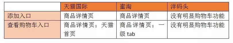现就针对使用购物车的这一流程中的几个主要功能进行对比分析。