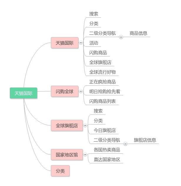 天猫国际的分类,底部有一个单独tab入口外,在天猫国际、全球旗舰店还设置了抽屉式导航,方便用户进行选择。商品类目也更多样。