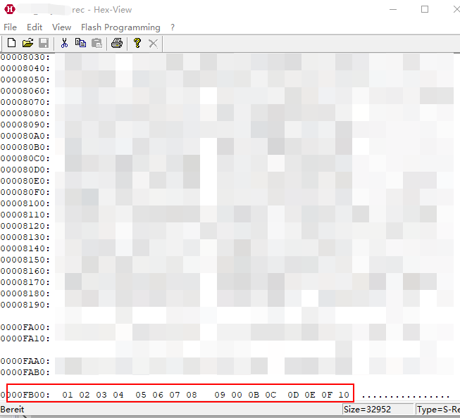 效果展示,生成的s19文件如下,可看到FB00地址已生成testData相应数据: