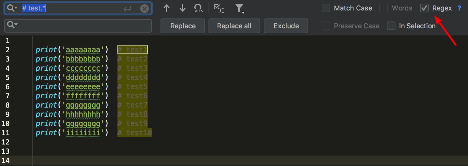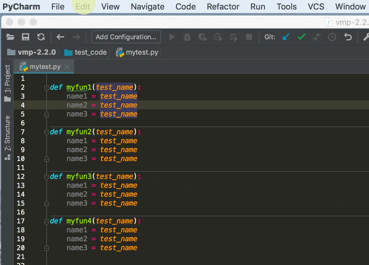 同样回到 PyCharm 中来,你会发现它也支持块编辑。