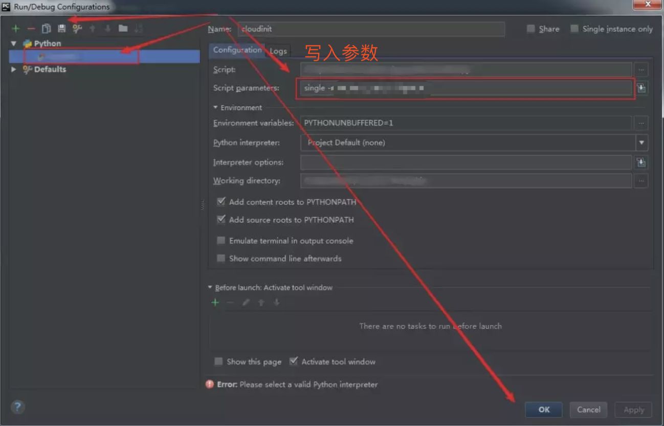 有时候,在运行/调试脚本的时候,我们需要指定一些参数,这在命令行中,直接指定即可。