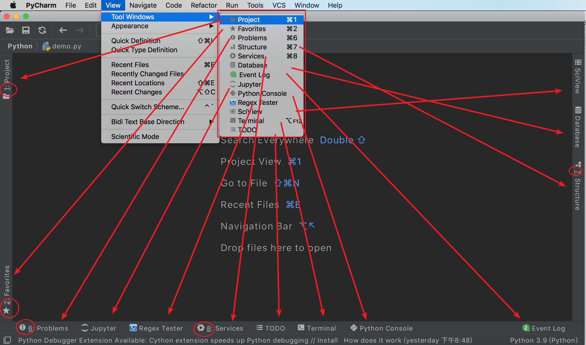 PyCharm 直接为我们集成了 Terminal,我们可以直接点击进入
