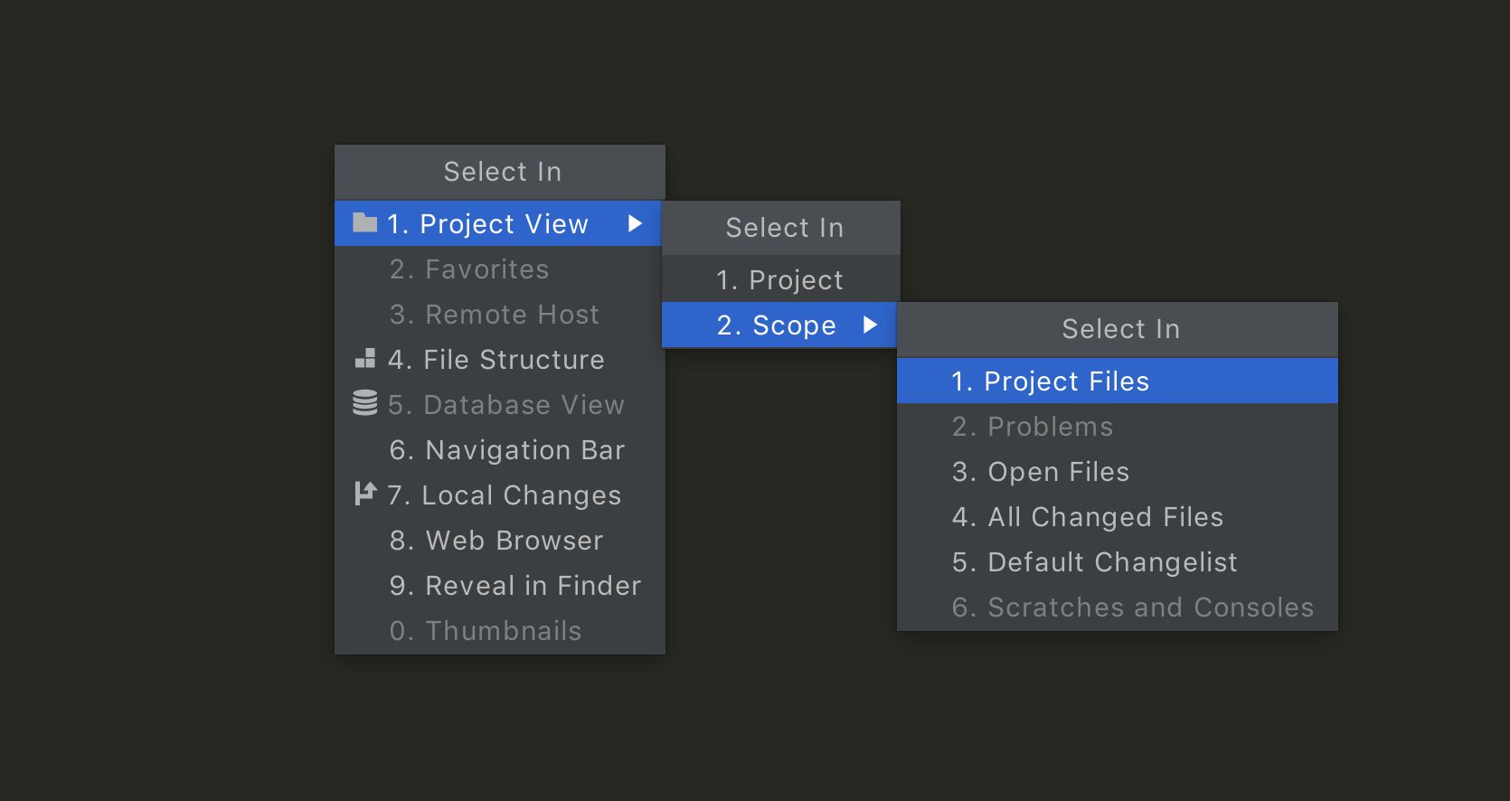 当你使用的是 ⌘ + ⇧ + N 打开的文件时,你会发现左边的项目树中,该文件的目录并没有被展开,这时候你想使用 第一种方法 去在资源管理器或者 Finder 中打开,就必须先打开项目树侧边栏,一层一层的点开该文件的目录,然后再 Reveal in Finder。