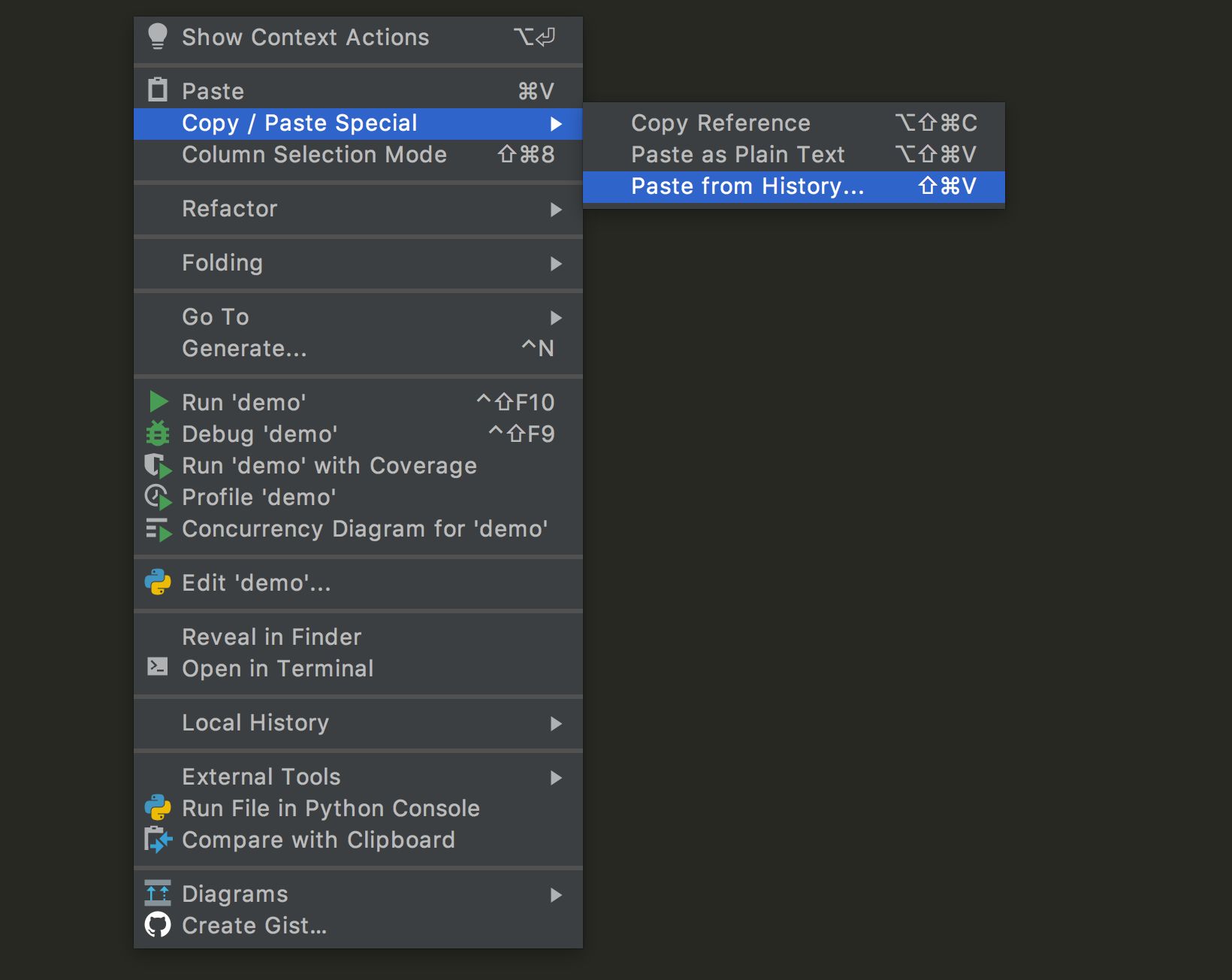 如果你使用的是旧版本的 PyCharm ,当你按住 alt(windows)或者option(mac),然后使用鼠标进行选择,你会发现这样一件神奇的事情。