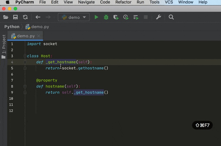 操作方法很简单,先选中你的变量,然后使用快捷键 Shift+F6,就可以直接重命名了。