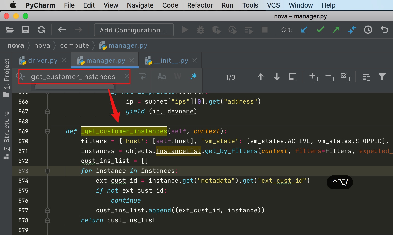 查找的快捷键是 Option + Enter (Windows 上是 Alt + Enter)。