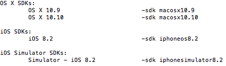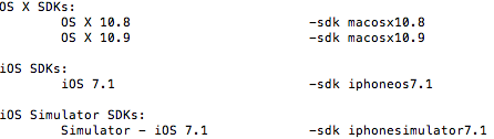xcodebuild -showsdks