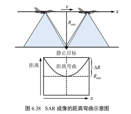 如式(1)所示,瞬时斜距R(η)随方位时间η而改变,该式表明目标轨迹(以距离为量纲)是方位时间的函数。在SAR成像中,在一个合成孔径时间内,来自某一点目标的回波信号在不同的时刻处在不同 距离单元的现象叫做距离徙动。