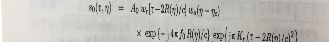 其中R0是雷达距离目标最近时的斜距,即最短距离。η是相对于最近点位置的方位之间,我的理解也就是相对于零多普勒时刻的方位时间,比如照射目标被照射到波束时假如雷达还未到达最近点位置,那么此时该η为传感器从该位置到达最近点位置的时间。否则为雷达从最近点位置到达雷达目标所在位置的时间。