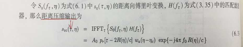 可以通过匹配滤波器来实现距离向的脉冲压缩。距离压缩输出为