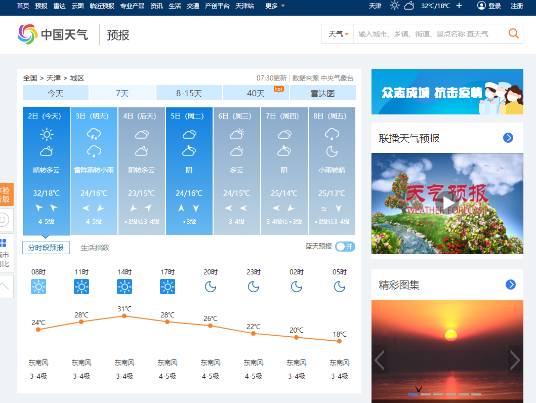 打开网站:http://www.weather.com.cn/weather/101030100.shtml 可以看到天津天气七天信息