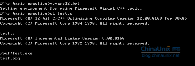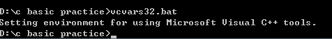 上述配置结束后,在DOS界面执行vcvars32.bat文件是上面设置生效,并启用VC tools