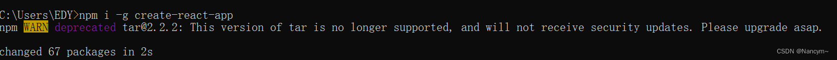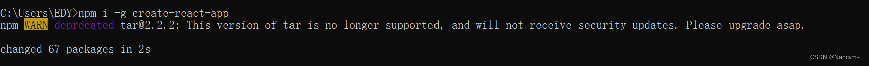 以上就是美好小鸽子最近收集整理的关于npm WARN deprecated tar@2.2.2: This version of tar is no longer supported, and will not receive se的全部内容,更多相关npm内容请搜索靠谱客的其他文章。