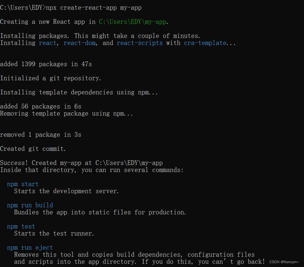 npx create-react-app my-app命令会临时安装 create-react-app 包,命令完成后create-react-app 会删掉,不会出现在 global 中。下次再执行,还是会重新临时安装。