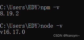 3.查看npm 、node版本(确保在Node 14.0.0 、npm 5.6以上)