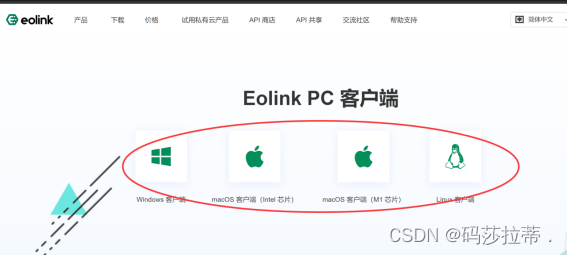 1、Eolink官.网非常简洁美,页面非常丝滑,普通小白一眼就能看明白是啥工具,下载页面支持各个平台的下载,简直就是yyds。
