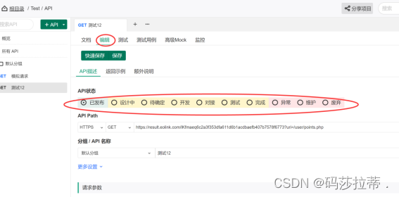 前端和客户端研发:可以将接口状态设置为“测试,异常”