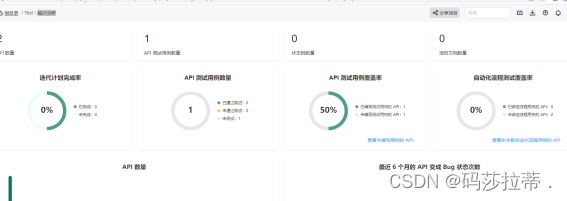 分析功能记录了各项数据,比如完成率,API测试用例数量,API测试用例覆盖率,自动化测试流程覆盖率,都能非常清晰的观看。