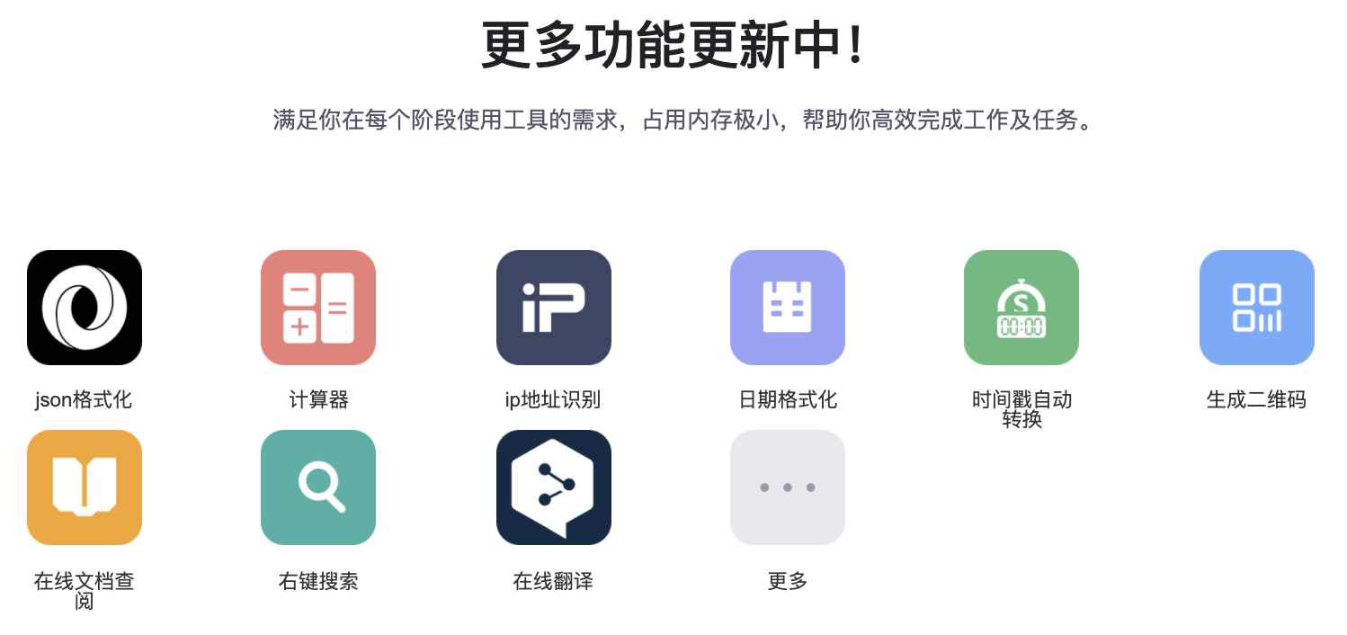 按字母“C”呼出万能框:在万能框输不同的短口令,即可实现一键JSON转换 、一键转换二维码、一键翻 译等,高效彩蛋技能不断更新中,高效解决开发问题。