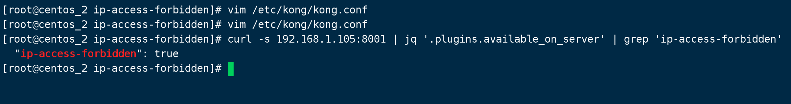 1.在/usr/local/share/lua/5.1/kong/plugins路径下创建插件目录 ip-access-forbidden