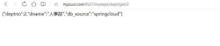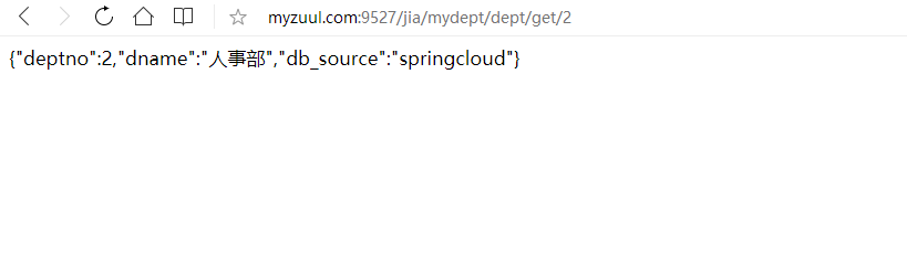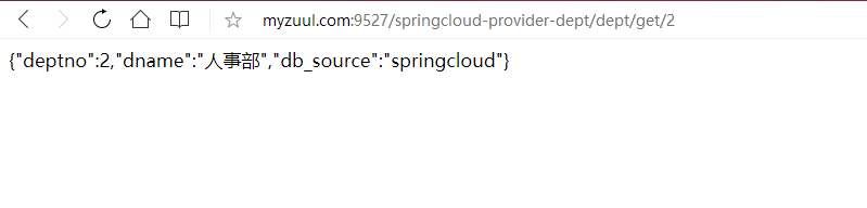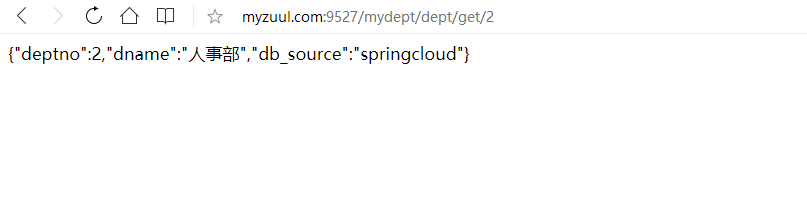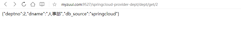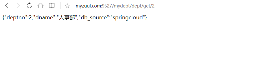 配置后访问:http://myzuul.com:9527/mydept/dept/get/2