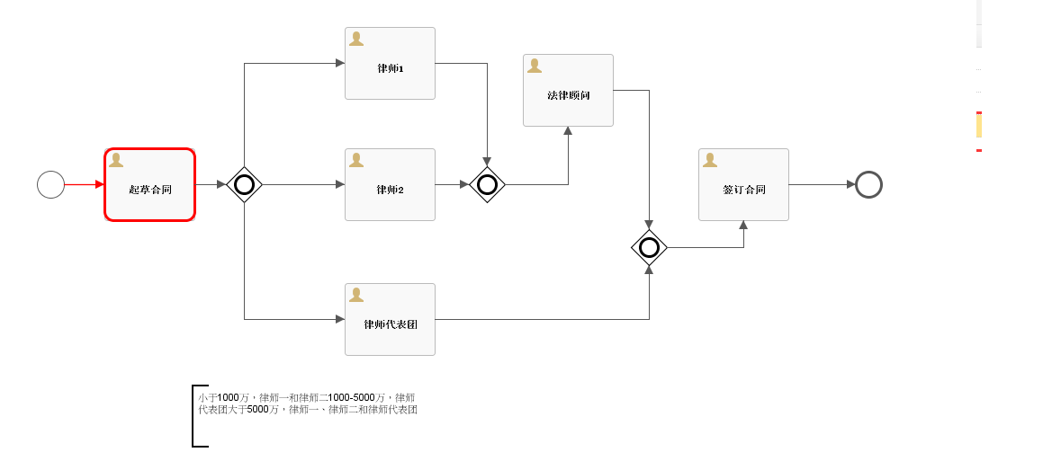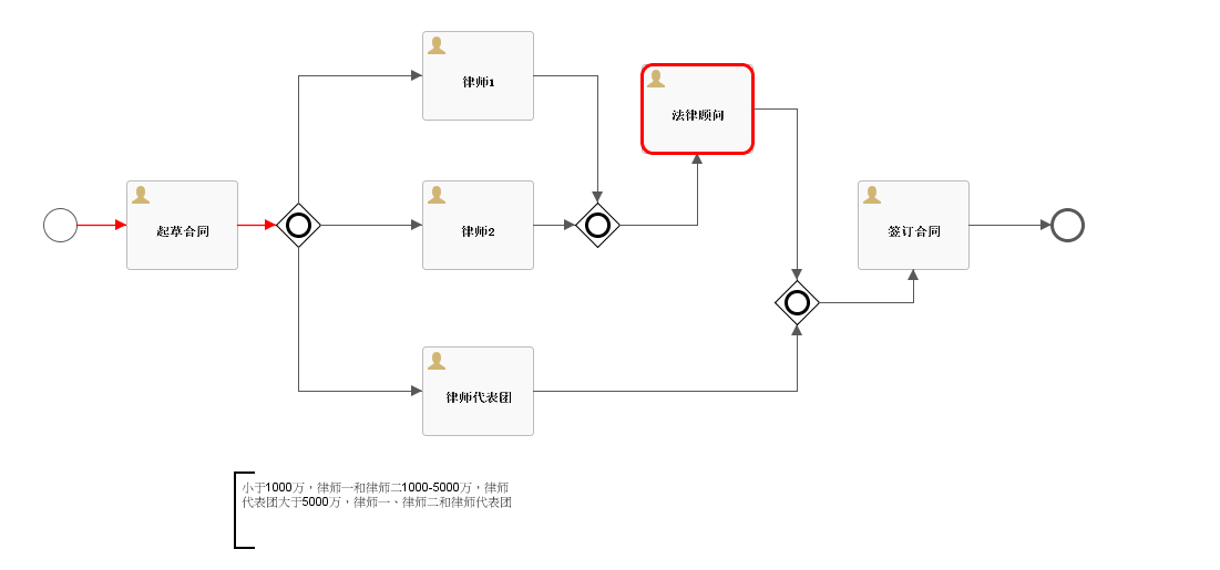 23 <userTask id="sid-E2A0931F-56FD-4F2B-9876-570A93D617E9" name="法律顾问" activiti:assignee="admin" />