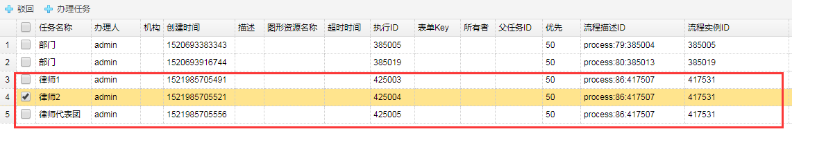19 <userTask id="sid-7CA796A7-F6D4-4204-938D-89EAB826196F" name="律师2" activiti:assignee="admin" />