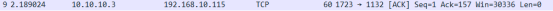 包35:经过防火墙,匹配连接跟踪表,转换目的IP为192.168.10.115,目的端口转换为57371