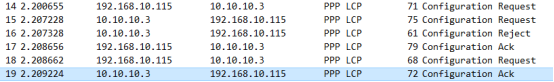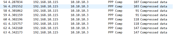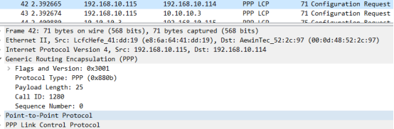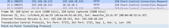 4. PPTP隧道中数据包的交互(实际通信流量、通信的packages是经过GRE封装过的PPP包)